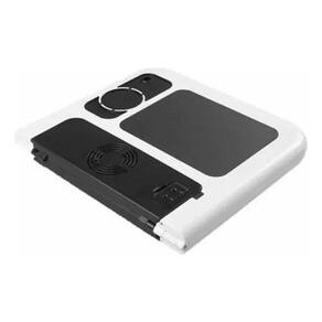 Mesa Para Notebook Suporte Com 2 Coolers E Sensor Touch Mouse Descrição: Com a mesa para notebook você terá muito mais conforto na hora de trabalhar. Além de respeitar o seu corpo, ela protege o seu equipamento, pois o mesmo fica apoiado em uma superfície com dois ventiladores. Este modelo pode ser utilizado tanto em cima de uma mesa de trabalho, como na cama, no sofá e até mesmo no aeroporto. - com seu design prático e exclusivo você pode levá-la junto com seu notebook para onde quiser, basta dobrá-la e colocá-la na sua maleta ou mochila. Uma novidade que vai te proporcionar mais comodidade e praticidade em seu dia-a-dia. - Tem regulagens de altura e inclinação - possui 02 coolers - possui local para utilizar mouse externo - porta copos e porta caneta - feita em plástico extra resistente - compacta e leve -