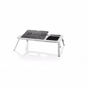 Mesa Para Notebook Suporte Com 2 Coolers E Sensor Touch TMT Mesa Para Notebook Suporte Com 2 Coolers E Sensor Touch Mouse Descrição: Com a mesa para notebook você terá muito mais conforto na hora de trabalhar. Além de respeitar o seu corpo, ela protege o seu equipamento, pois o mesmo fica apoiado em uma superfície com dois ventiladores. Este modelo pode ser utilizado tanto em cima de uma mesa de trabalho, como na cama, no sofá e até mesmo no aeroporto. - com seu design prático e exclusivo você pode levá-la junto com seu notebook para onde quiser, basta dobrá-la e colocá-la na sua maleta ou mochila. Uma novidade que vai te proporcionar mais comodidade e praticidade em seu dia-a-dia. - Tem regulagens de altura e inclinação - possui 02 coolers - possui local para utilizar mouse externo - porta copos e porta caneta - feita em plástico extra resistente - compacta e leve - Alimentação dos cooler é via cabo USB Incluso - Dimensões: 55,5 x 31,5