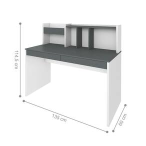 PESO PRODUTO COM EMBALAGEM (KG): 46 | PESO DO PRODUTO (KG): 46 | CORES DO PRODUTO (FILTRO DE CORES): Grafito/Branco | MATERIAL PARA FILTRO: MDP | PRODUTO PRECISA DE MONTAGEM?: Sim, a montagem é simples mas sugerimos a contratação do nosso de montagem (para os CEPs em que o está disponível) ou de algum experiente de sua preferência | LARGURA PRODUTO COM EMBALAGEM (CM): 136 | ALTURA DO PRODUTO (CM): 114,5 | COR PREDOMINANTE: Branco | DESCRIÇÃO DO TAMANHO: 114,5x135x60 | ALTURA DO PRODUTO COM EMBALAGEM (CM): 17 | LARGURA DO PRODUTO (CM): 135 | MATERIAL PRINCIPAL: MDP | FORMATO: Classica | COMPRIMENTO PRODUTO COM EMBALAGEM (CM): 61 | QUANTIDADE DE GAVETAS: 2 | COMPRIMENTO DO PRODUTO (CM): 60 | NOME DO PRODUTO NO FORNECEDOR: Escrivaninha France | ESTADO DE ORIGEM: PR | CONTEÚDO DA EMBALAGEM: 1 Escrivaninha | INSTRUÇÕES/CUIDADOS: Limpar com pano macio e seco, não utilizar produtos abrasivos