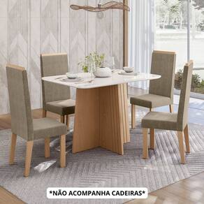 Mesa de Jantar com base mel e tampo com vidro off white , une modernidade e charme em um design elegante e funcional. Seu tampo retangular com cantos arredondados proporciona leveza visual, enquanto a base em tom mel traz um toque natural e sofisticado ao ambiente.