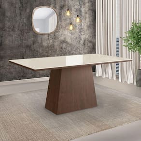 ( Mesa avulsa, não acompanha cadeiras. ) Mesas são indispensáveis para o funcionamento da casa e é no cômodo de confraternização que elas ganham protagonismo. Composto por peças de muito charme, a mesa Ref:142 vidro off white orna o uso desse móvel importante com 4 e 6 cadeiras para garantir uma usabilidade plena para o seu dia a dia. Ideal para cozinhas e salas de jantar, o kit oferece amplo espaço para que você possa dispor pratos, copos, talheres e até uma travessa com o quitute da vez, enquanto acomoda os convidados com aconchego e receptividade. Ah, para completar, é só combiná-la com o restante da mobília de sua preferência e criar o ambiente intimista perfeito para a sua rotina ou reuniões entre amigos. Acabamento: Pintura UV Acabamento da Base: Pintura UV Acabamento do Tampo: Pintura UV Ambiente Principal: Sala de Jantar codigo_ean: 7909903119280 Complexidade da Montagem: Média: pode ser montado por mais de uma pessoa e/ou necessite de maior conhecimento para montagem Cor: Marrom/Off White Cor do Produto: Marrom/Off White Dobrável: Não Escala de Brilho: Semi-Brilho Espessura do Tampo: 29 mm Extensível: Não Informações Complementares: Mesa avulsa, não acompanha cadeiras. Itens Inclusos: 1 Mesa, Kit Ferragens e Manual de Montagem Linha ou Coleção: 2022 Manual de Especificação Técnica: https://product-hub-prd.madeiramadeira.com.br/777285/documents/5018f2ce-090f-4b4c-affa-e8f610d91ace1007857manualmontagem140.pdf Manual de Montagem e Instalação: https://product-hub-prd.madeiramadeira.com.br/777285/documents/6977a844-ff39-4c22-aa2b-9ff326f2c1e61007858manualmontagem140.pdf Material da Base: MDP Material do Tampo: Vidro/MDF Material Principal: MDP Medida da Base (A x L x P): 75x67x41cm Medida do Tampo (L x C x E): 160x90x2,9cm Necessita Montagem: Sim Origem do Produto: Nacional Peso: 46 kg Possui Base: Sim Possui Rodízio: Não Possui Suporte Giratório: Não Recomendações de Uso, Manutenção e Limpeza: Limpeza com pano macio e levemente umedecido Sistema de Montagem: Parafusos, Cantoneiras, Tapa Furo e Cola Suporta Até (kg): 100 kg Ean: 7909903119280