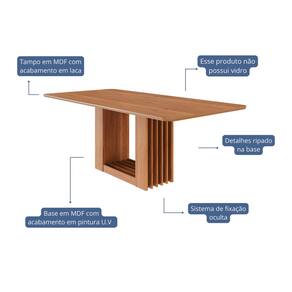 Mesa para Sala de Jantar Ariela 210 Cm sem Vidro Cinamomo - Marrom