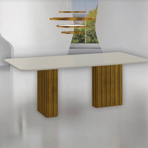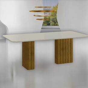 Que tal deixar sua sala de jantar ainda mais completa? Com a mesa Isis tampo 180cm tampo copo com vidro seu ambiente ficará ainda mais lindo e moderno, a mesa possui base ripada com design moderno e sofisticado deixando seu ambiente ainda mais completo.
