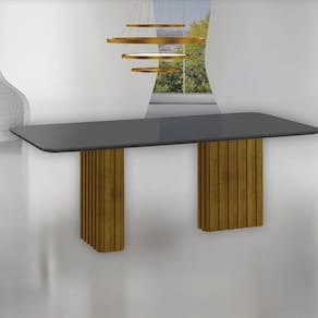 Que tal deixar sua sala de jantar ainda mais completa? Com a mesa Isis tampo 1,80 tampo copo com vidro seu ambiente ficará ainda mais lindo e moderno, a mesa possui base ripada com design moderno e sofisticado deixando seu ambiente ainda mais completo.