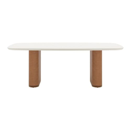 Com design contemporâneo e detalhes refinados, a Mesa Lintz é ideal para quem valoriza sofisticação e conforto. Seu tampo usinado em MDF de 20 mm conta com acabamento em pintura UV e aplicação de vidro pintado de 3 mm, oferecendo resistência e fácil manutenção. Os pés são produzidos em MDF, revestidos com espuma D14 e tecido sintético na cor caramel, trazendo textura e elegância ao ambiente. O detalhe metalizado nos pés e as sapatas deslizantes embutidas completam o visual com praticidade e charme.