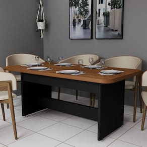 Transforme sua cozinha ou sala de jantar com esta Mesa Retangular de 6 Lugares, perfeita para reunir família e amigos com conforto e estilo. Com design moderno e elegante, a mesa combina tampo amadeirado em MDF de alta resistência com base na cor preta, criando um contraste sofisticado que valoriza qualquer ambiente. Além de funcional, ela é robusta, prática e fácil de limpar, ideal para o uso diário. Seja para refeições rápidas no dia a dia ou jantares especiais, esta mesa é a escolha ideal para quem busca beleza, durabilidade e praticidade. Características: · Modelo: Mesa retangular para cozinha/jantar · Capacidade: 6 lugares · Material: MDF de alta qualidade · Acabamento: Tampo amadeirado com base nature · Estilo: Moderno e elegante · Uso indicado: Cozinha, sala de jantar ou espaço gourmet · Durabilidade: Estrutura firme e de fácil manutenção Benefícios: Design moderno que combina com diferentes estilos de decoraçãoEspaço ideal para até 6 pessoasTampo resistente e de fácil limpezaExcelente opção para cozinha ou sala de jantar