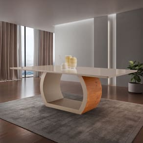 A mesa de jantar Ellis é uma obra-prima de design moderno, uma peça que captura instantaneamente a atenção com sua presença imponente. Feita com madeira de alta qualidade, ela é mais do que um simples móvel; é uma expressão de estilo e sofisticação. Seu design arrojado e contemporâneo é evidente desde o primeiro olhar, destacando-se por uma base com detalhes curvados que conferem um charme único e uma elegância inigualável a qualquer espaço.