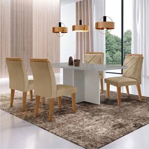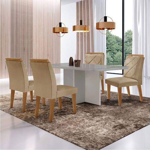 Mesa para Sala de Jantar Olímpia 120cm MDF Canto Copo com Vidro e 4 Cadeiras Melissa