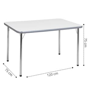Mesa Tubular em Aço Cromado com Tampo Revestido em Fórmica Medindo 120x75 cm e Borda Cinza. Com Design Tradicional, Comporta Quatro Lugares, por Isso é Ideal para Sala de Jantar ou Cozinha. Com Cores Neutras, Combina com Qualquer Decoração. Acabamento: Verniz Acabamento da Base: Cromado Ambiente Principal: Sala de Jantar codigo_ean: 7909903812563 Complexidade da Montagem: Baixa: pode ser montado por uma pessoa sozinha Cor: Cromado/Branco/Cinza Cor do Produto: Cromado/Branco/Cinza Dobrável: Não Escala de Brilho: Brilhante Extensível: Não Itens Inclusos: 01 Mesa, Manual de montage, e Kit de ferragens Manual de Montagem e Instalação: https://product-hub-prd.madeiramadeira.com.br/922981/documents/2ed7dffd-ce66-47bc-a548-f57308e4b6412147166580117211312234034.pdf Material da Base: Aço Material do Tampo: Fórmica Material Principal: Aço Necessita Montagem: Sim Origem do Produto: Nacional Peso: 17,02 kg Possui Portas: Não Possui prateleira: Não Possui Rodízio: Não Possui Vidro: Não Recomendações de Uso, Manutenção e Limpeza: Pano seco Sistema de Montagem: Parafusos Suporta Até (kg): 15 kg
