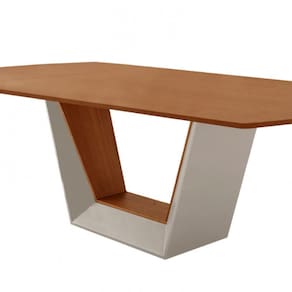 Mesa Para Sala De Jantar Rubi 220cm Moderna Mobília Off White Com Off White/cinamomo Imbuia Mesa para Sala de Jantar Rubi 220cm Madeira Tampo Barril Laminado Moderna Mobilia A mesa de jantar Rubi e uma verdadeira joia em qualquer ambiente. Produzida com madeira de qualidade excepcional, ela exala sofisticacao e elegancia desde o iro olhar. Seu design diferenciado e um convite a contemplacao, com uma base geometrica que mescla linhas modernas e formas distintivas. O destaque da mesa Rubi e, sem duvida, sua base unica, que adiciona um toque de modernidade e idade ao espaco. Com suas formas geometricas meticulosamente trabalhadas, ela nao apenas chama a atencao, mas tambem otimiza o ambiente, criando uma sensacao de equilibrio e harmonia. Seja em uma sala de jantar espacosa ou em um ambiente mais intimista, a mesa Rubi se adapta com facilidade, transformando cada refeicao em uma experiencia memoravel. Sua qualidade superior garante durabilidade e resistencia, enquanto seu design excepcional cria um ambiente acolhedor e convidativo.