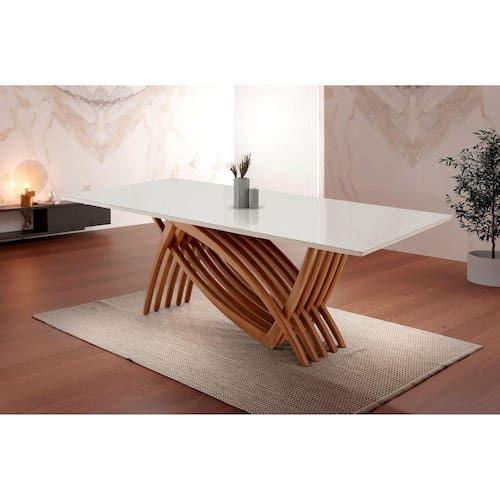 Base com um designer diferenciado, de madeira maciça tauari, sapata regulável em todos os pés. Tampo canto moeda laqueado off white, com vidro 4mm serigrafado off white temperado. Embalagem reforçada para manter a qualidade do produto. Acabamento: Pintura Acabamento da Base: Pintura Acabamento do Tampo: Laca Ambiente Principal: Sala de Jantar Atóxico: Não codigo_ean: 7909903614860 Complexidade da Montagem: Média: pode ser montado por mais de uma pessoa e/ou necessite de maior conhecimento para montagem Cor: Imbuia Natural/Laq. Off White Cor do Produto: Imbuia Natural/Laq. Off White Design da Base: Trenó Dobrável: Não Escala de Brilho: Fosco Espessura do Tampo: 40 mm Extensível: Não Informações Complementares: Produto de madeira maciça tauari e tampo formato barril laminado de madeira cinamomo para maior segurança do cliente, e um designer moderno Itens Inclusos: 1 Mesa Linha ou Coleção: Zurick Manual de Montagem e Instalação: https://product-hub-prd.madeiramadeira.com.br/898065/documents/9d185591-4a09-4080-8738-e0455343fd073282044021manualdemontagem.pdf Material da Base: Madeira Maciça Material do Tampo: Madeira Maciça Material Principal: Madeira Maciça Medida da Base (A x L x P): 78 x 52 x 140 Medida da Mesa (A x L x P): 80 x 220 x 110 Medida do Tampo (L x C x E): 220 x 110 x 4 Necessita Montagem: Sim Origem do Produto: Nacional Peso: 120,5 kg Possui Portas: Não Possui prateleira: Não Possui Rodízio: Não Possui Suporte Giratório: Não Possui Vidro: Sim Recomendações de Uso, Manutenção e Limpeza: Limpar com pano seco Sistema de Montagem: Parafusos Suporta Até (kg): 80 kg Tipo de Madeira Maciça: Tauari Tipo de Madeira Maciça da Base: Tauari Tipo de Madeira Maciça do Tampo: Tauari
