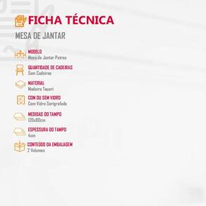 Esse conjunto é composto por: 01 - BASE DA MESA: EM LAMINA DE MADEIRA CINAMOMO 01 - Tampo: MDF LAMINADO E VIDRO SERIGRAFADO DE 4 MM