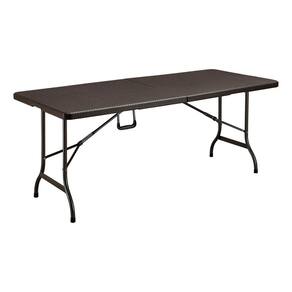 Resumo das caracteristicas: Tipo: Mesa Dobravel Tipo Maleta Estampa: Rattan Cor: Marrom Comprimento: 180 cm Marca: Klimber Material: Polietileno de alta densidade e aco Uso recomendado: Interno e externo Sistema dobravel tipo maleta para facil transporte e armazenamento. Superficie ampla e resistente. Facil de limpar e manter. Montagem e desmontagem rapidas. Ideal para eventos, lazer e uso domestico. Marca: Não Informado
