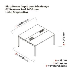 Mesa Plataforma Dupla com Pé de Aço para Coworking 150X140/2P PDC15/14/2P Branco