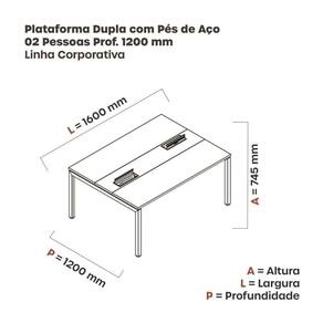 Mesa Plataforma Dupla com Pé de Aço para Coworking 160x120 Pdc16/12/2p Walnut/Preto - Marrom