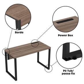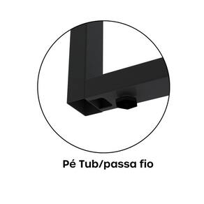 A mesa oferece amplo espaço para computadores, materiais de trabalho e reuniões rápidas. Seu design funcional permite integração com cadeiras e acessórios de escritório, promovendo um ambiente produtivo e organizado.