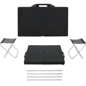 Mesa Portátil Dobrável Para Camping com 2 Banquetas - Cor Preta