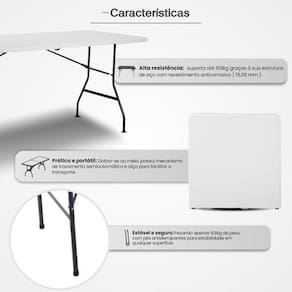 A mesa dobravel possui design portatil no estilo maleta, facilitando a montagem, desmontagem e transporte.