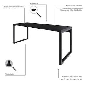 Mesa Presidente 190x70x75cm Yon Preto Tx/ Preto Tx/ Sobre o ProdutoMesa Presidente 190x70x75cm Yon YOME7190 çoDescrição do Produto:A mesa Yon YOME7190 possui dimensões generosas, combinando funcionalidade com o design industrial. O tampo desta mesa é engrossurado em 40mm e as bordas possuem acabamento em fita de PVC de 01mm, proporcionando durabilidade e uma superfície muito resistente. Os pés são feitos em tubos de aço 30x50mm, conferindo estabilidade, robustez e uma imponente qualidade. Sua combinação de materiais e proporções bem pensadas a tornam uma opção de escolha versátil e elegante para ambientes corporativos ou home linha Yon é uma fusão elegante entre o estilo industrial e o contemporâneo. Com linhas limpas, materiais robustos e detalhes sofisticados, essa coleção é perfeita para quem busca um ambiente moderno e funcional. Os móveis desta linha oferecem uma versatilidade notável, adaptando-se a diversos ambientes e necessidades, permitindo a criação de composições únicas e personalizadas. sendo a escolha ideal para quem busca qualidade e estilo em um só Inclusos:1 MesaDimensões dos Produtos:Mesa Presidente 190x70x75cm Yon YOME7190 ço: 190 x 70 x 75 cmInformações Logísticas (Comp. X Prof. X Alt.) 194 x 74 x 11,5 cm - Peso: 28,014 KgPeso Total: 28,014 KgObservações:Não acompanha acessórios decorativos. Imagens meramente ilustrativas.Informações Técnicas / Características:- Cor do Produto: ço- Cor do Predominante: Revestido- Marca: Metalig- Modelo: YOME7190- Linha: Yon- Material: Mdp- Material da Estrutura / Pés: Aço- Acabamento: BP- Escala de Brilho: Fosco- Fita de Borda: Pvc - Possui Gavetas: Não - Possui Pés: 2- Pés Niveladores: Sim - Acabamento Estrutura: Epóxi-Pó- Formato: Retangular - Suporta Até (kg): 90kg- Comprimento: 190cm- Profundidade: 70cm- Altura: 75cm - Peso Lí.: 26,417Kg- Recomendações de Uso, Manutenção e Limpeza: Para a limpeza, utilize flanela seca ou pano macio levemente umedecido em água. Utilize um pano seco em seguida. Evite com produtos químicos (solventes, thinner, acetona, etc) e não utilize nenhum tipo de esponja de aço.- Necessita de Montagem: Sim / Acompanha Manual de Montagem- Complexidade da Montagem: Média: pode ser montado por mais de uma pessoa e/ou necessite de maior conhecimento para montagem.- Garantia: 01 ano Material: Mdp | Acabamento: BP | Escala de Brilho: Fosco | Fita de Borda: Pvc | Material da Estrutura: Aço | Acabamento da Estrutura: Epóxi-Pó | Modelo: YOME7190 | Quantidade máxima de pedido: 1 | Necessita montagem: Sim | Marca: Compace | Profundidade: 70 cm | Comprimento: 190 cm | Altura: 75 cm | Largura: 70 cm | É em forma de L: não | Produto: Mesa | Cômodo indicado: Escritórios | Cor: Multicolorido | Tonalidade: Multicolorido | do modelo: YOME7190 | Baterias são necessárias?: false | Palavras-chave de Pesquisa: Não Aplicável | da peça: YOME7190 | de caixas: 1 | Componentes incluídos: Manual de montagem e kit acessórios | Fabricante: Compace | Quantidade de itens: 1 | Principais Características do Produto 0: Escritório | Certificação de teste externa: Não aplicável | Principais Características do Produto 1: BP Acetinado | Principais Características do Produto 2: Estrutura de aço | Peso do item: value=26.417000000000002;unit=kilograms | Dimensões do item P x L x A: width#value=190;depth#unit=centimeters;height#value=75;height#unit=centimeters;depth#value=70;width#unit=centimeters | Montagem: | Móvel Dobrável: | País de Origem: | Duração da Garantia: | Recursos da Mesa: | Tipo de Garantia: | Desing da Escrivaninha: | Base da Mesa: | Coleção de Antiguidade: | Recursos da Escrivaninha: | Tipo de Mesa: | Produto personalizado: | Dimensões do Produto (A x L x C), sem a caixa de embalagem: | Altura da Mesa: | Data de validade Anvisa: | Motivo de Isenção Anvisa: | Tamanho Do Pacote: | Formato do Espelho: | Código Anvisa do Produto: | Temas de Estampas: | Nr. do Lote do Produto: | Formato da Escrivaninha: | Shape: | de Assentos: | Estilo: | Qtd. de Produto no Lote: | Funcionalidades: | Quantidade: Cor: Preto TX/