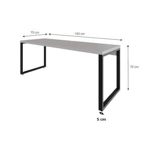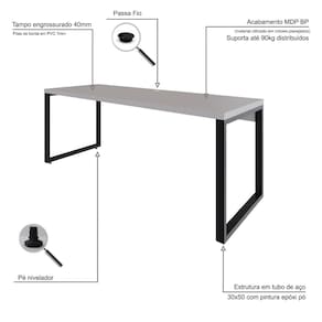 A mesa Yon YOME7190 possui dimensões generosas, combinando funcionalidade com o design industrial. O tampo desta mesa é engrossurado em 40mm e as bordas possuem acabamento em fita de PVC de 01mm, proporcionando durabilidade e uma superfície muito resistente. Os pés são feitos em tubos de aço 30x50mm, conferindo estabilidade, robustez e uma imponente qualidade. Sua combinação de materiais e proporções bem pensadas a tornam uma opção de escolha versátil e elegante para ambientes corporativos ou home offices.
