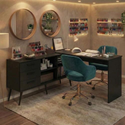 A Mesa Profissional para Manicure em L com 3 Gavetas Jady Multimóveis MP6043 foi desenvolvida para valorizar o seu talento e transformar cada atendimento em uma experiência ainda mais profissional. Com design funcional e excelente aproveitamento de espaço, ela oferece a organização e o conforto que você precisa para trabalhar com precisão, praticidade e elegância, elevando o nível do seu estúdio ou salão.
