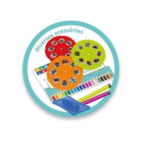 Acompanha 3 lanternas, 24 tipos de desenhos, 1 livro de desenhos e 12 canetas para soltar a imaginação e criatividade.