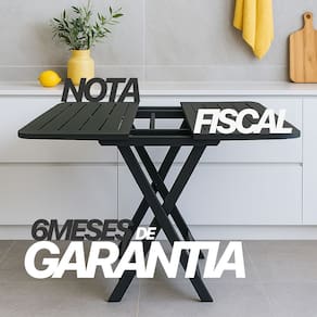 Dimensões: 80 cm de comprimento x 72 cm de largura x 70 cm de altura Estrutura dobrável, fácil de transportar e guardar Tampo em plástico resistente, cor preta, fácil de limpar Estrutura metálica reforçada para maior durabilidade e estabilidade Uso versátil: ideal para refeições, eventos, apoio ou trabalho Acabamento discreto e elegante que combina com diversos ambientes