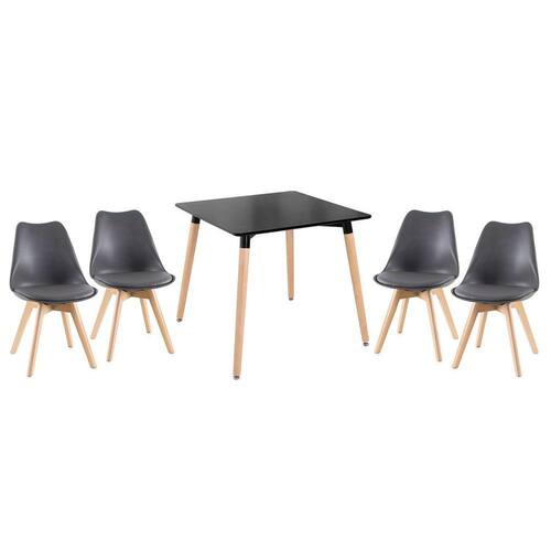 Mesa quadrada jantar cozinha Eames 80 x 80 cm + 4 cadeiras estofadas Leda Mesa preto com cadeiras preto -