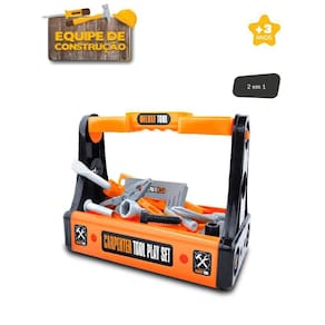 Serralheria 2 em 1 é a opção ideal na hora de criar um mundo de possibilidades, um faz de conta para liberar a imaginaçãoMonte uma mesa para brincar e quando terminar, guarde as ferramentas na caixa novamente Imagens ilustrativas, cores podem variar.