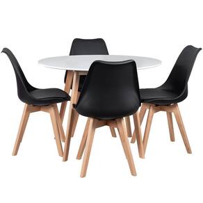 Altura: 75 cm | Cor: Multicolorido | Garantia do fabricante: 3 meses | Largura: 100 cm | Peso do produto: 25 kg | Produto: Conjunto de Mesa e Cadeiras | Quantidade de lugares: 4 | Material do tampo (mesa): MDF laqueado (Laca fosca) | Material da base (mesa): Madeira | Altura (mesa): 70 cm | Diâmetro (mesa): 100 cm | Material do assento (cadeiras): Polipropileno e couro PU | Material da base (cadeiras): Madeira natural | Altura do assento (cadeiras): 44 cm | Largura do assento (cadeiras): 48 cm | Profundidade do assento (cadeiras): 43 cm | Fabricante: Mobili | RBN: 17100657011 Cor: Mesa branco com cadeiras preto