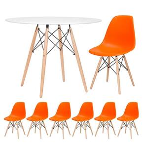 Mesa Redonda Eames 100 Cm Branco + 6 Cadeiras Eiffel Dsw Laranja
