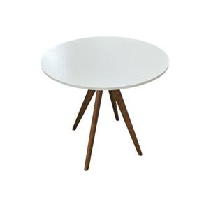 Com tampo branco de acabamento suave e pés de madeira robustos, ela combina perfeitamente elegância e durabilidade. Seu formato redondo cria uma atmosfera mais íntima, ideal para reuniões familiares, jantares a dois ou encontros com amigos.