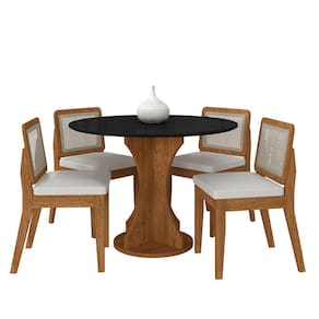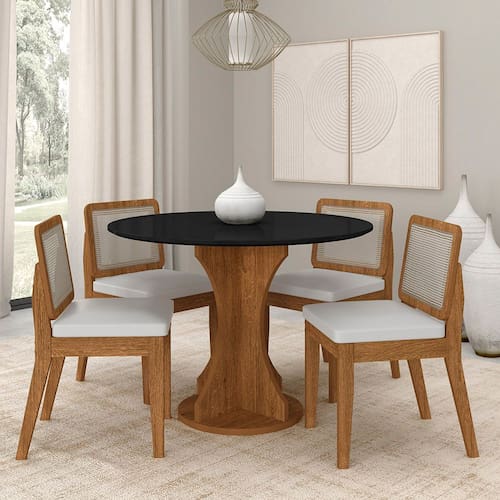 Mesa Redonda Andria 4 Cadeiras Sextavadas Freijó/pto/corino Bco - M.a - Branco