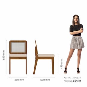 Detalhes Técnicos das Cadeiras - Assento Tapeçado, Estofado e Fixo - Encosto com Tela Sextavada - Palha Sintética - Estrutura: MDF - Tonalidade: Freijó/Bouclé off white - Medida: A:84CM x L:45CM x P:53CM - Do chão até o assento possui 47cm - Suporta até 90kg (cada)