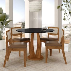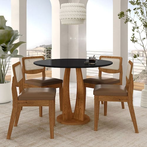 Mesa Redonda Camogli 4 Cadeiras Sextavadas Freijó/pto/c.caramelo - M.a - Marrom