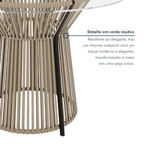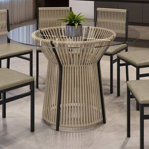 A Mesa Madri é a peça perfeita para quem busca unir sofisticação e resistência. Com tampo redondo de vidro temperado, ela traz leveza e elegância ao ambiente. Sua base estruturada em aço e detalhes em corda náutica confere modernidade, firmeza e durabilidade, além de ser um verdadeiro destaque na decoração. Ideal para salas de jantar, varandas gourmet e ambientes integrados, oferecendo beleza e praticidade para momentos especiais em família ou com amigos.