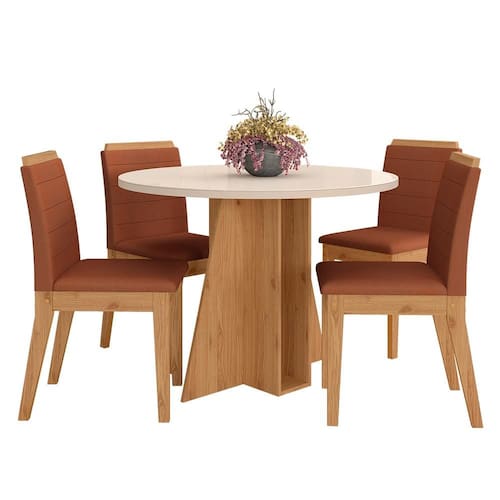 Mesa Redonda Com Vidro 4 Cadeiras Bélgica Cinamo/off Prem/terrac - M.a - Laranja