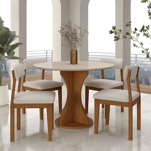 Mesa Redonda Cosença Com 4 Cadeiras Estofadas Fre/off/bouclé Off - M.a - Marrom