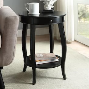 MadeiraAcme Alysa Mesa redonda de madeira com 1 gaveta e prateleira inferior em preto