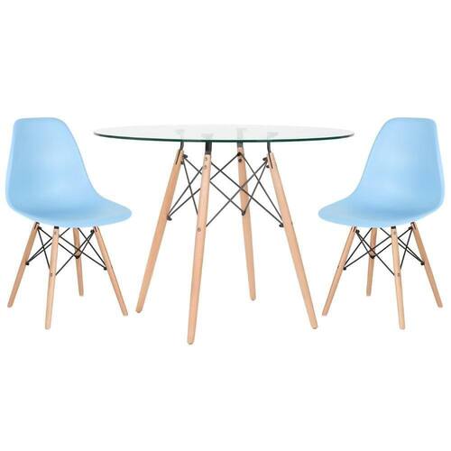 Mesa Redonda Eames Com Tampo De Vidro 100 Cm + 2 Cadeiras Eiffel Dsw Azul Claro