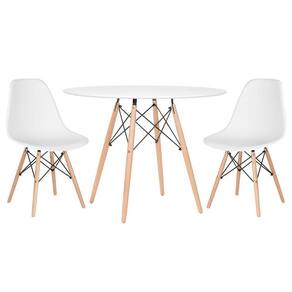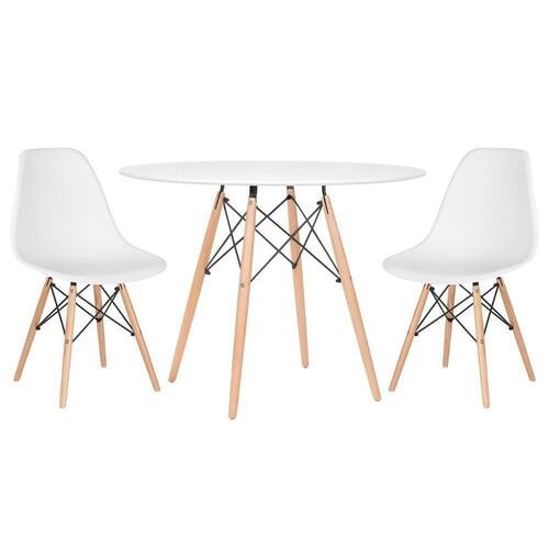 Mesa Redonda Eames 100cm Branco + 2 Cadeiras Branco
