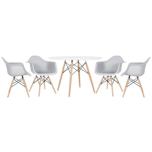 • 1 - Mesa redonda Eames 120 cm 4 - Cadeiras Eiffel DAW