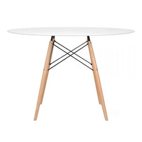MDF laqueado, polipropileno, madeira e açoMesa redonda Eames 120 cm + 5 cadeiras Eiffel DSW Mesa branco com cadeiras cinza escuro -