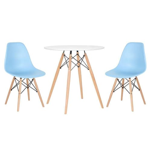 Mesa Redonda Eames 70 Cm Branco + 2 Cadeiras Eiffel Dsw Azul Claro