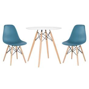 CADEIRAS: Material do assento: Polipropileno - Material da base: Madeira e aço - Altura do encosto: 81 cm - Altura do assento: 43 cm - Largura do assento: 46 cm - Profundidade do assento: 40 cm - Distância entre os pés: 40 cm - Peso suportado: 130 kg. MESA: Material do tampo: MDF laqueado (Laca fosca) - Material da base: Madeira e aço - Altura: 75 cm - Diâmetro: 70 cm.
