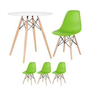 Mesa Redonda Eames 70 Cm Branco + 3 Cadeiras Eiffel Dsw Verde Claro