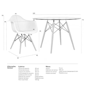 Fabricante: Mobili | RBN: 17100657011 | Altura: 75 cm | Cor: Multicolorido | Garantia do fabricante: 3 meses | Largura: 120 cm | Peso do produto: 15 kg | Produto: Conjunto de Mesa e Cadeiras | Quantidade de lugares: 6 | Material do tampo (mesa): Vidro incolor temperado 8 mm | Material da base (mesa): Madeira e aço | Altura (mesa): 75 cm | Diâmetro (mesa): 120 cm | Material do assento (cadeiras): Polipropileno | Material da base (cadeiras): Madeira e aço | Altura do encosto (cadeiras): 78 cm | Altura do assento (cadeiras): 45 cm | Largura do assento (cadeiras): 40 cm | Profundidade do assento (cadeiras): 45 cm | Peso suportado (cadeiras): 130 kg