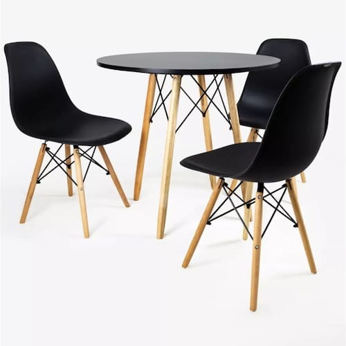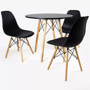 Mesa Jantar Redonda Eames Eiffel Premium 80 CMA Mesa Eames Eiffel Redonda com Base em MDF, e de excelente qualidade e acabamento premium, foi produzida com material resistente e fácil de limpar, perfeito para dar aquela renovada na sua sala de estar, com o designer Eames Eiffel podendo utilizar em qualquer ambiente de decoração.- ACABAMENTO PREMIUM- RESISTENTE A ÁGUA- DESIGN MODERNO- ATENDE AS NECESSIDADES DO DIA A DIATamanhos:Tampo: 80 CM de diâmetroAltura: 75 CMEspessura: 2 CMSuporta até 120KGCadeira Charles Eames Eiffel Wood - Base De MadeiraAs cadeiras Eiffel são importantes itens para a sua decoração. Independente da proposta, a decoração da sua residência merece contar com artigos decorativos e móveis de altíssima qualidade. A Cadeira Charles Eames Eiffel Wood Base Madeira possui um design exclusivo, belo e cheio de charme. Feitas em materiais de elevada procedência, as cadeiras deste conjunto contam com um modelo especial, desenvolvido na metade do século passado pelo casal Eames.Estas cadeiras de curvatura ergonômica são chamadas também de cadeira DSW (Dining, Side, Wood).A inspiração deste casal rendeu excelentes frutos até os dias atuais. Hoje, elas são constituídas de materiais mais leves e resistentes. Tanto a base quanto o assento são feitos em polipropileno, vale ressaltar que o encosto e o assento são unidos formando uma curva perfeita que se adapta ao corpo, como resultado obtém-se uma cadeira superconfortável.As cadeiras são constituídas de polipropileno e madeira, estes materiais conferem muito mais resistência e segurança ao modelo. É preciso ressaltar que as cadeiras são enviadas ao endereço de entrega desmontadas, isto é, o conjunto vai acompanhado de um manual de montagem. Mas não se preocupe, as cadeiras são de fácil montagem!Especificações Técnicas do Produto:Modelo: Charles Eames EiffelAltura Total: 82,00 (cm)Altura do Assento: 45,00 (cm)Largura: 46,00 (cm)Profundidade: 54,00 (cm)Material da Estrutura: Madeira e MetalMaterial do Assento: PolipropilenoPeso Aproximado: 3.70 (Kg)Resistência: Aconselhável até 120 (Kg)Produto Enviado: DesmontadoComplexidade de Montagem: FácilImportante: Produto enviado desmontado (não nos responsabilizamos pela montagem do produto ou por defeito por má montagem).Garantia do vendedor: 3 meses