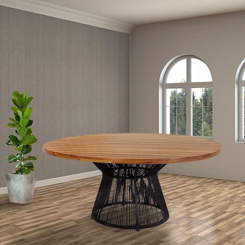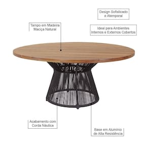 AS IMAGENS SÃO MERAMENTE ILUSTRATIVAS E PODEM SOFRER VARIAÇÕES DE COR E PEQUENOS DETALHES DE ACORDO COM O SEU MONITOR, ILUMINAÇÃO DO AMBIENTE E ATÉ MESMO A SUA PERCEPÇÃO Redonda Elemento em Madeira MaciÃa com Base em Corda NÃutica Preta para Ãrea Gourmet 1,50m