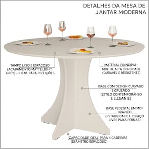 A Mesa de Jantar Elisa foi criada para mudar essa realidade. Seu formato redondo aproxima naturalmente as pessoas, facilitando conversas e criando um clima mais leve e integrado.
